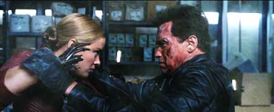 Terminator 2 flink tegenspreekt, bedankten zowel Hamilton als Furlong, maar Arnie - na een behoorlijke reeks mindere films - zag er wel brood in, ook al omdat hij intussen politieke ambities heeft gekregen, en het al tot gouverneur van de staat Californië heeft geschopt. Nu wordt deze film met veel tamtam aangekondigd als "Schwarzeneggers laatste film", maar wie in de politiek hoog klimt, kan laag vallen, dus of dit het definitieve einde van de acteercarrière van de Oostenrijkse spiermassa betekent, valt nog af te wachten. Feit is dat hij ondanks zijn leeftijd er nog steeds patent uitziet, en dat zowel hij als Kristanna Loken - die voor deze rol zes maanden extreme workout achter de rug heeft - zich in deze film in een fysiek erg veeleisende rol hebben weten te profileren. Kristanna Loken heeft bovendien dat tikkeltje onderkoeldheid dat manifest nodig is om een dergelijke rol met een beetje geloofwaardigheid te kunnen spelen. Haar verschijning op het scherm laat je het warm en koud tegelijk krijgen, en meer moet dat voor ons niet zijn. Ook was het volgens ons een zeer verstandige keuze om Edward Furlong buiten te werken ten voordele van Nick Stahl, want de jonge acteur incorporeert perfect de held-tegen-wil-en-dank John Connor, zoals we hem na de vorige films als volwassene zouden inbeelden. En ook Claire Danes verdient in deze film zeker haar strepen, te meer omdat dit genre films voor haar palmares compleet nieuw is.