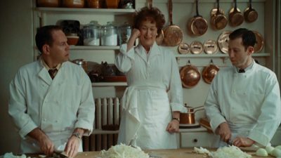 The French Chef die vanaf 1963 op de Amerikaanse televisie werd uitgezonden. Voor de gelegenheid kreeg Meryl Streep 15 cm hoge zolen aangebonden om de afstand tussen haar eigen lengte en de 1.88 m van Child te overbruggen. Bovendien maakte ze zich de typische handbewegingen van Child eigen en de nogal bruuske manier waarop ze haar bovenlichaam heen en weer liet deinen, plús haar vrij hoge falsetstemmetje met de klemtoon op het laatste woord in de zin. Ze verdient er de Oscar voor vrouwelijke hoofdrol voor tijdens de uitreiking in maart 2010, maar wellicht blijft het bij een nominatie, want Oscars voor vrouwelijke hoofdrollen in komische films zijn in Hollywood zeldzamer dan roze olifanten op de noordpool.