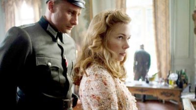 Regisseur Saul Dibb heeft schijnbaar flink gesnoeid in de novelle, want op basis van het resultaat kan je je nauwelijks voorstellen dat er hier sprake is van een Prix Renaudot-winnaar. In Némirovsky’s origineel wordt veel aandacht besteed aan de vluchtelingenstroom die in juni 1940 op gang kwam, aan de ontreddering en het wisselvallige samenhorigheidsgevoel, en nadien verlegt ze de aandacht naar de sfeer in het kleine Frans dorpje, waar als gevolg van de Duitse bezetting de rust en het ongecompliceerde levensritme duchtig door elkaar worden geschud. In de versie van Saul Dibb blijft daarvan niet veel over. Hij focust op de intocht van de Duitse legereenheid, op dat ene conflict tussen een boer en een opdringerige Duitse officier en vooral op de relatie tussen Lucile en Bruno von Falk. De ontreddering van de vluchtelingen, de propvolle wegen en de dodelijke raids, het komt allemaal kort aan bod en het is niet meer dan sfeerschepping, terwijl de novelle net wegens de perfect reconstructie van de tijdsgeest de aandacht van de Prix Renaudot-jury trok.