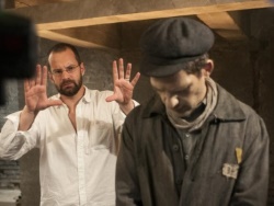 Géza Röhrig neemt de rol van Saul Ausländer voor z’n rekening. Hij is van Joods-Hongaarse afkomst en woont met zijn familie in Manhattan. In 1989 had hij een rolletje in een Hongaarse tv-miniserie, in New York was hij voornamelijk aan de slag als shomer in een rouwcentrum. In het joodse begrafenisritueel is dat de persoon die bij het lichaam van de overledene blijft tot het moment van de begrafenis en die assistentie biedt tijdens de rituele wassing. Röhrig werd twee keer bekroond voor zijn hoofdrol in Son Of Saul (o.a. op het Santa Barbara Intern. Film Festival) en moest vier keer met een tweede plaats genoegen nemen (o.a. National Society of Film Critics, USA, en Los Angeles Film Critics Association), op zich een bevreemdend resultaat voor een acteur die weinig om handen heeft (nauwelijks actie of dialogen) en wiens gelaatsuitdrukking nauwelijks varieert. Maar de fysieke dominantie is compleet als gevolg van de voortdurende close-ups, en aan Sauls grimmige en indringende blik kan je als kijker moeilijk ontsnappen.