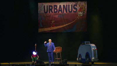 godfather van het Vlaamse cabaret. Dat bepaalde stand-upcomedyartiesten vandaag zich niets moeten aantrekken van politieke correctheid of geldende fatsoensnormen, hebben ze allemaal in meer of mindere mate te danken aan Urbanus. De man bedient zich in zijn valiesje duidelijk van spiekbrieven, maar zelfs een grote mijnheer als Toon Hermans deed dat ook, en daarbij komt ook nog eens dat Urbanus in tegenstelling tot Hermans ook nog een aardig stukje gitaar kan spelen. Eén of twee keer grijpt Urbain terug naar een mop uit het verleden - bijvoorbeeld door te stellen dat hij overal zegt dat ze in Oostende allemaal dom zijn - maar de manier waarop hij snedig uit de hoek blijft komen en de